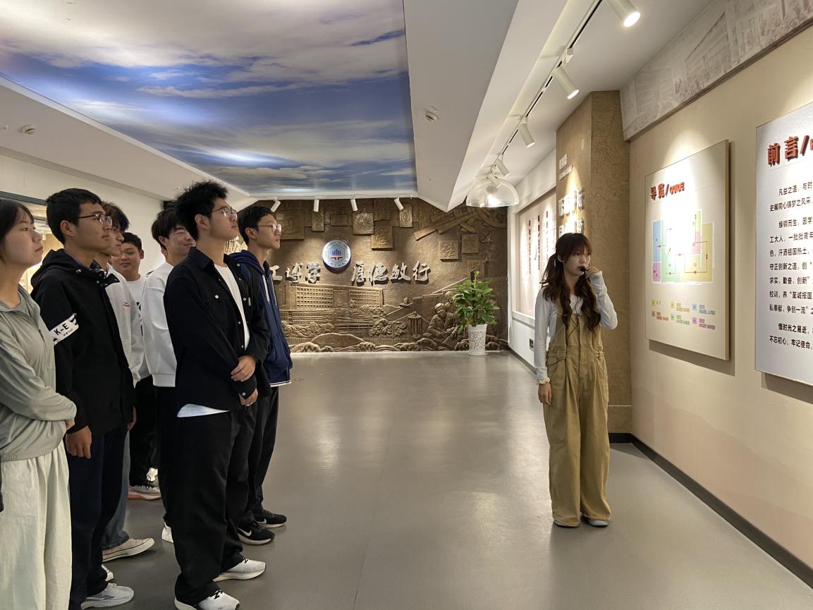 在校史馆,同学们在讲解员的引导下,依次参观了“精神篇”“脉络篇”“奋进篇”“校友篇”“展望篇”五个主题展区。从1958年建校初期的“马鞍山钢铁工业学校”,到“华东冶金学院”时期的蓬勃发展,再到2000年更为现名后开启中央与地方共建的新篇章,一幅幅历史图片、一件件珍贵实物,清晰勾勒出学校与时代同行的奋进轨迹。同学们认真聆听、不时驻足,深切感受学校发展历程。在优秀校友展区,前辈们的事迹生动诠释了“精工博学、厚德敏行”的校训精神,让新生对学校育人理念有了更深刻的理解。