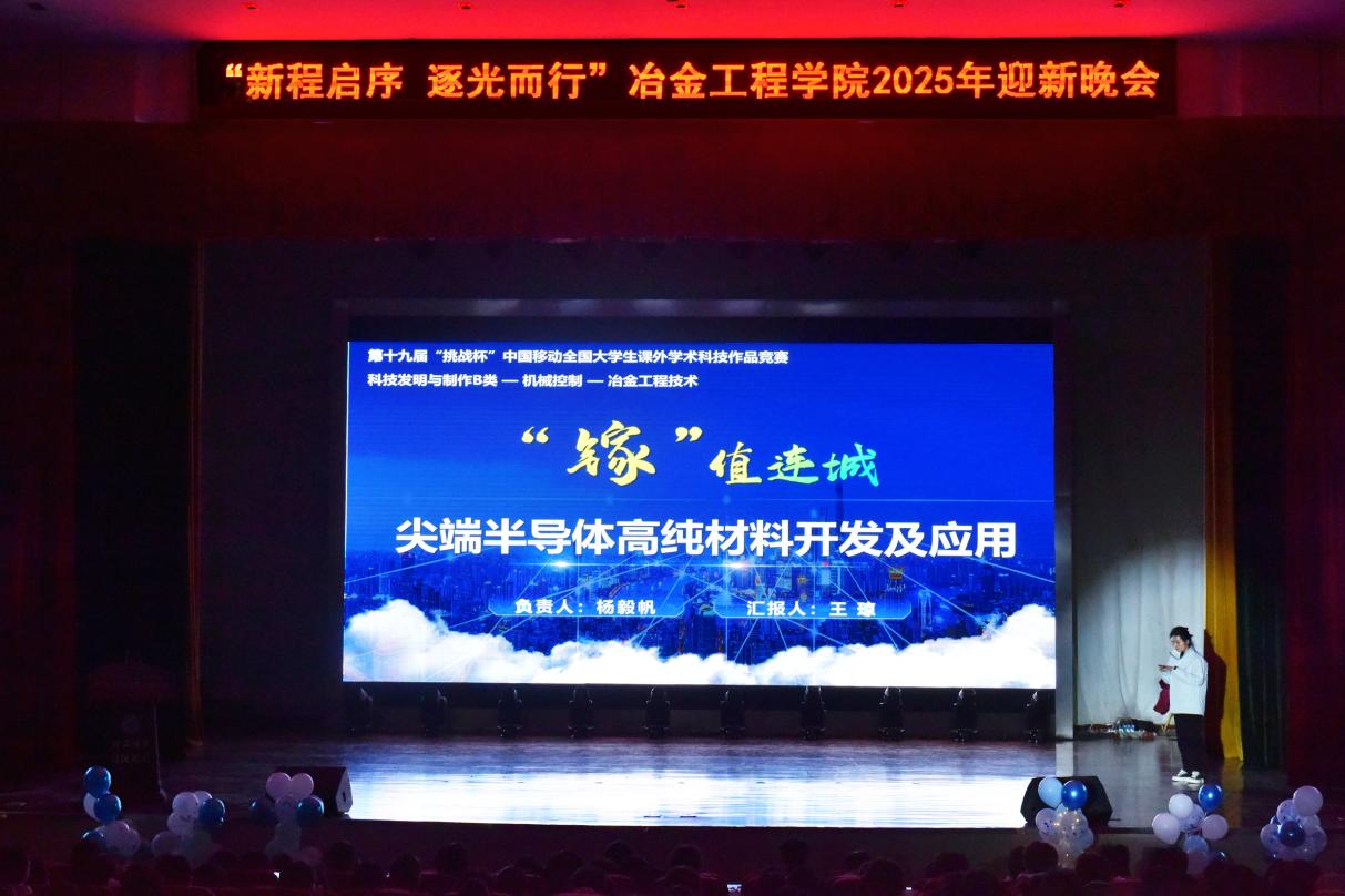 中场互动“飞花令”别具匠心,学院党委书记路壮志老师、副院长(主持行政工作)张立强老师融合学院专业特色,分别以“金属”“钢铁”为题出令,现场同学们踊跃抢答,妙语连珠,既有“金戈铁马,气吞万里如虎”的豪情,也有“百炼成钢终不悔”的志向,充分展现了冶金学子扎实的人文素养与专业认同感,赢得现场观众的阵阵掌声。
