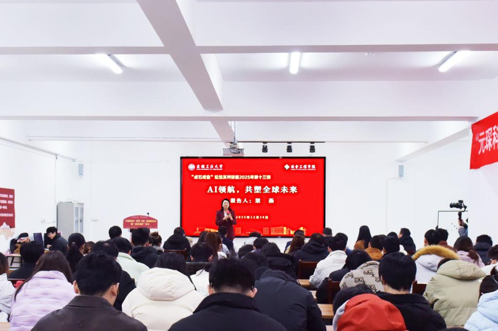 颁奖仪式后,梁燕应邀作了《AI领航,共塑全球未来》报告,她结合元琛科技在人工智能与绿色制造融合方面的创新实践,深入剖析了AI技术赋能环保产业升级的路径与前景,鼓励同学们夯实专业基础、拓展国际视野,在服务国家“双碳”战略和智能制造转型中勇当先锋。梁燕与在场学生围绕职业规划、技术前沿及AI时代工程师核心素养等话题进行了互动。(撰稿:张夏 审核:高倩莹 朱艳飞 路壮志)
