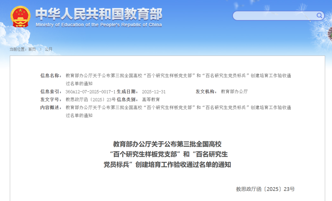 近日,教育部公布了第三批全国高校“百个研究生样板党支部”和“百名研究生党员标兵”创建培育工作验收结果。经过两年的创建培育,学校评估总结、省级党委教育工作部门把关审核、教育部学位与研究生教育发展中心审查及相关司局综合评定,茄子视频
